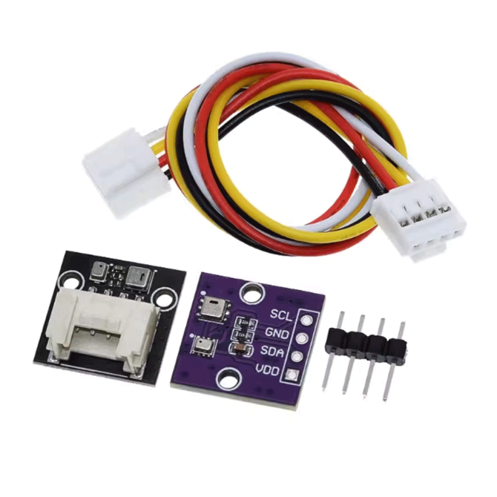 - • Два датчика в одном модуле – комбинация AHT20 и BMP280 позволяет одновременно измерять три ключевых метеорологических параметра: температуру, относительную влажность воздуха и атмосферное давление, что делает модуль универсальным инструментом для метеомониторинга